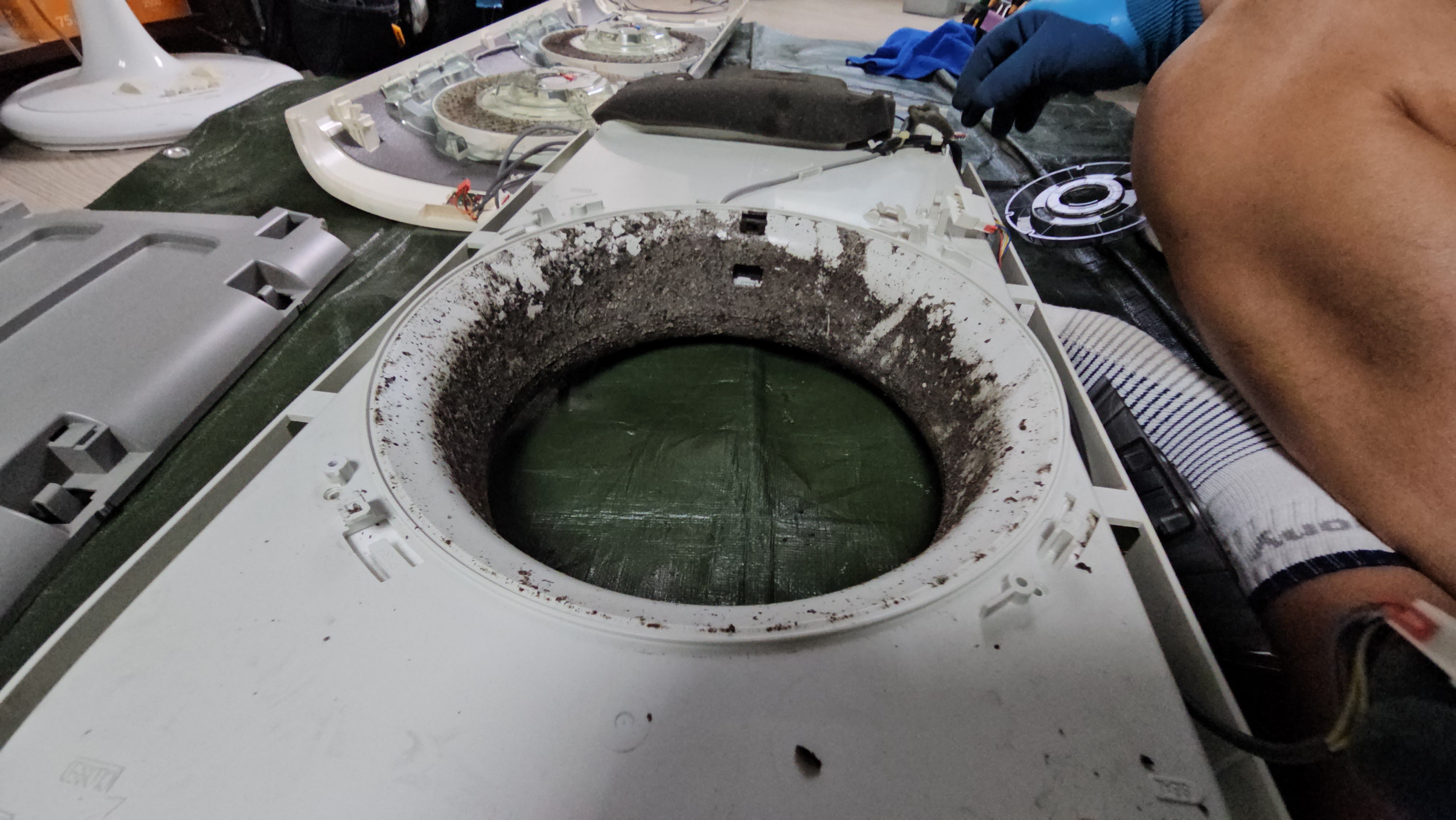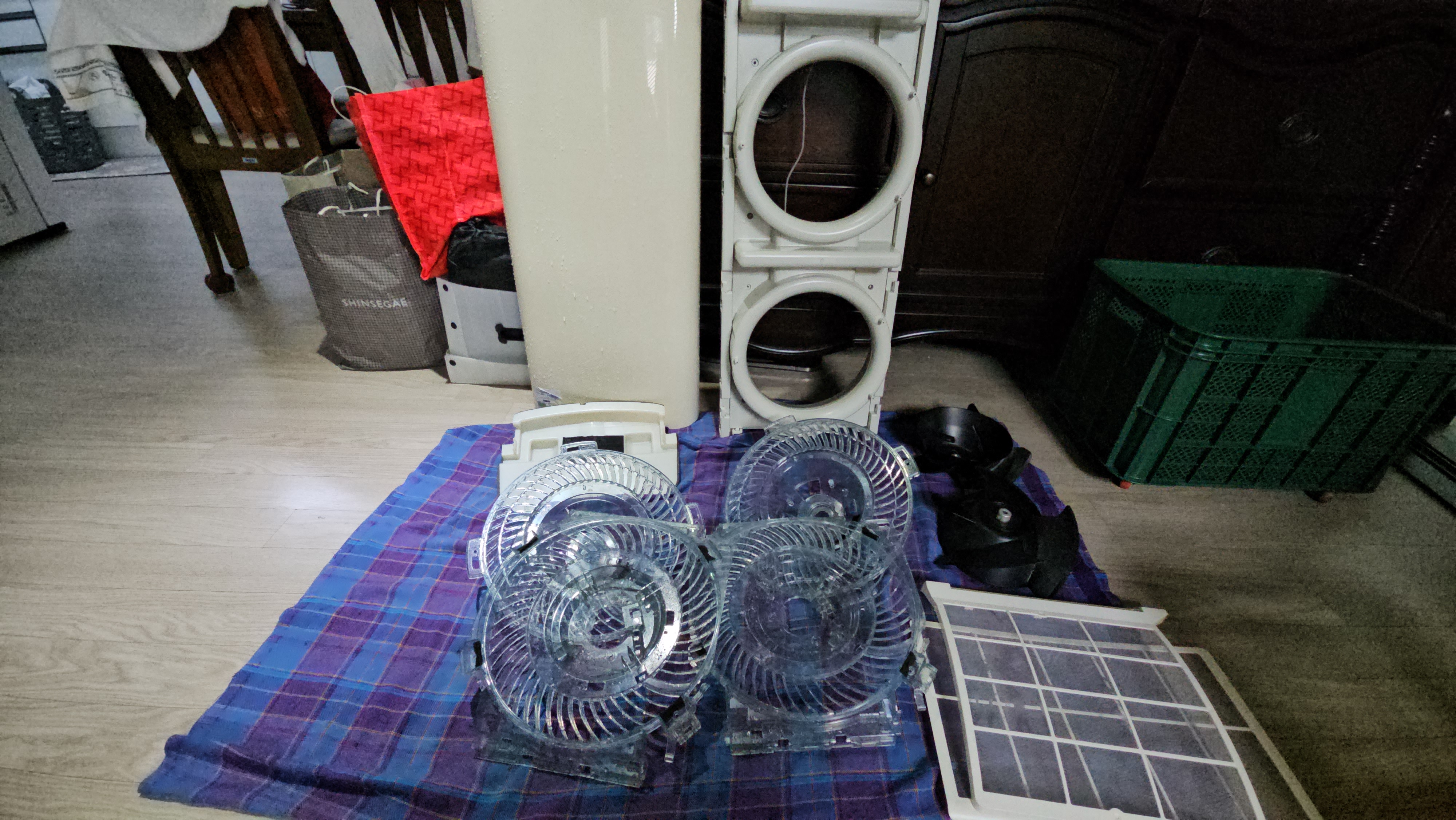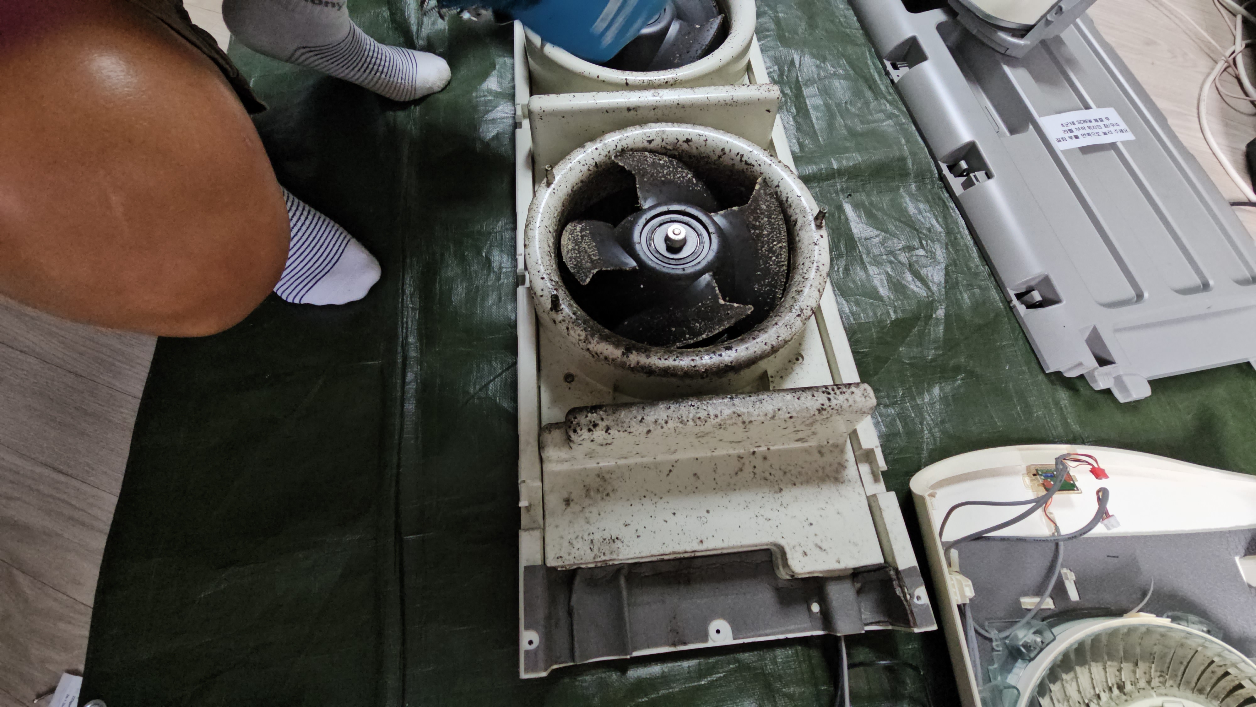 완전 분해 후, 내부 송풍팬부터 열교환기까지