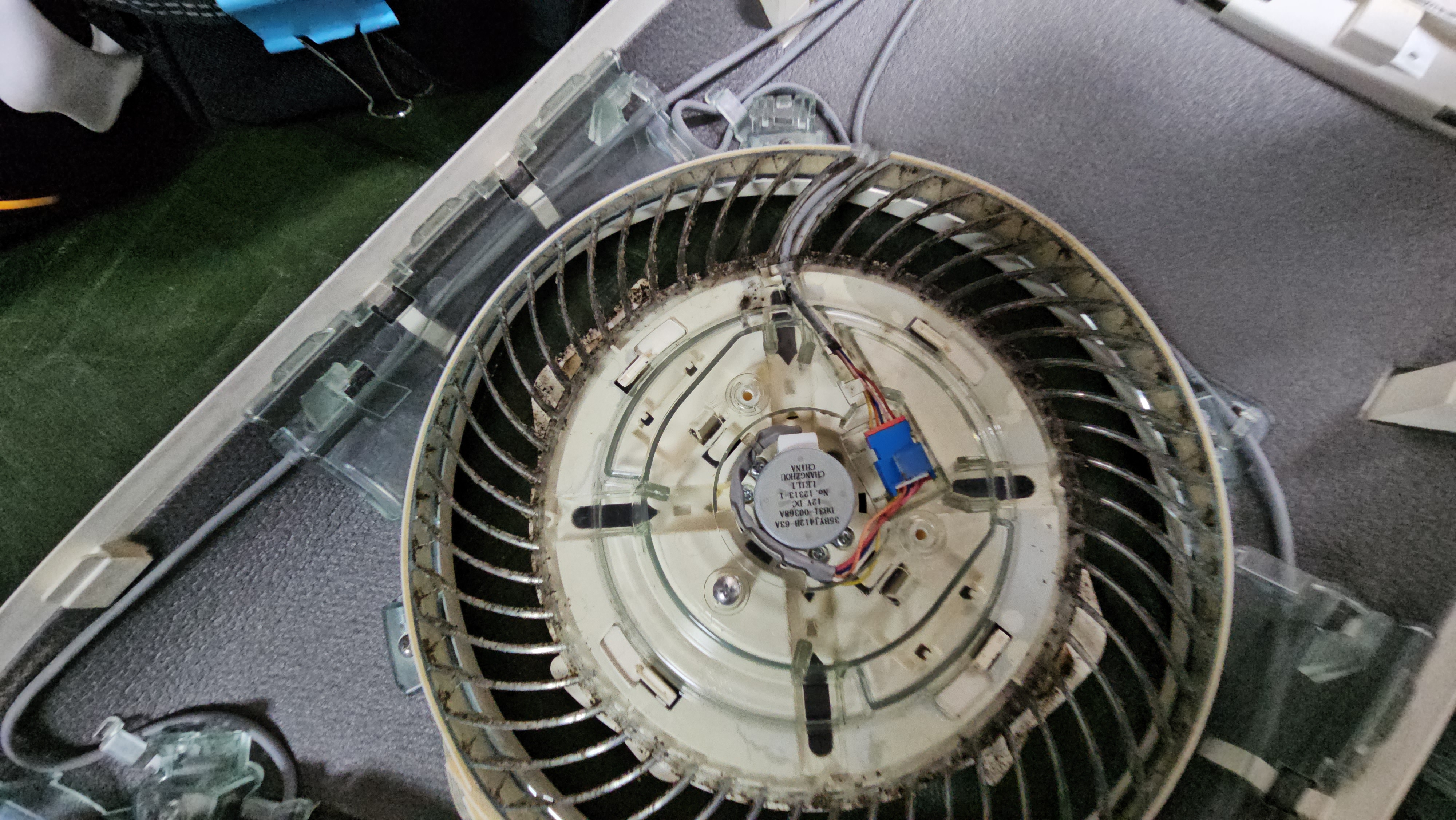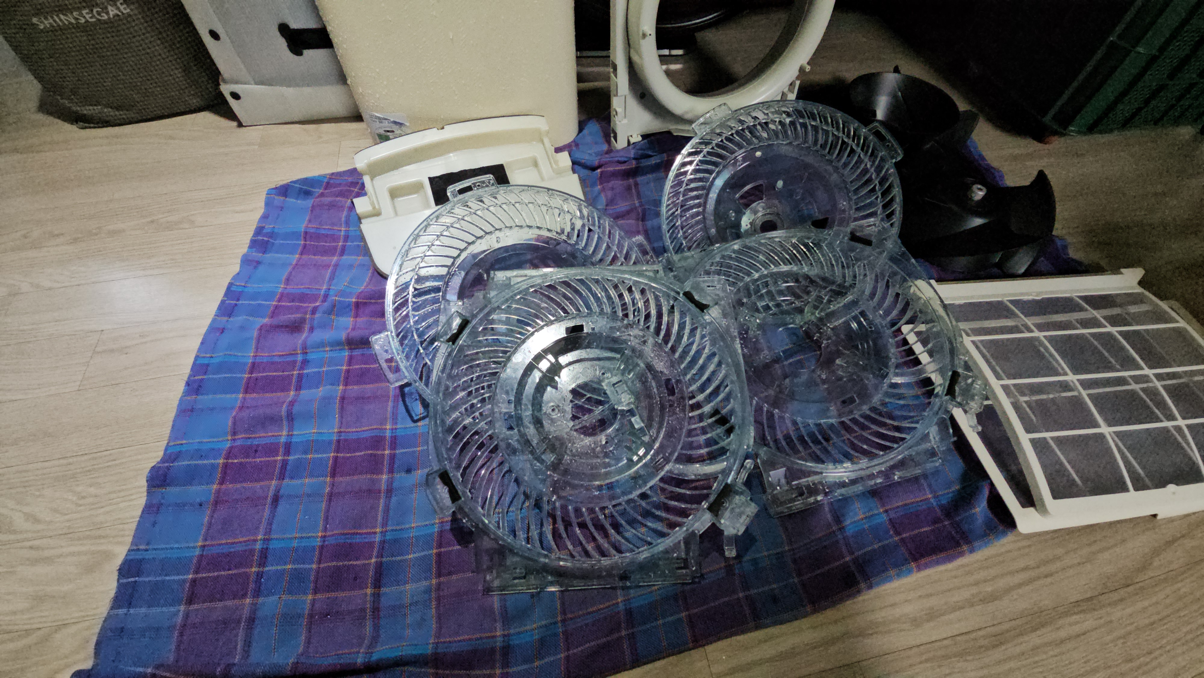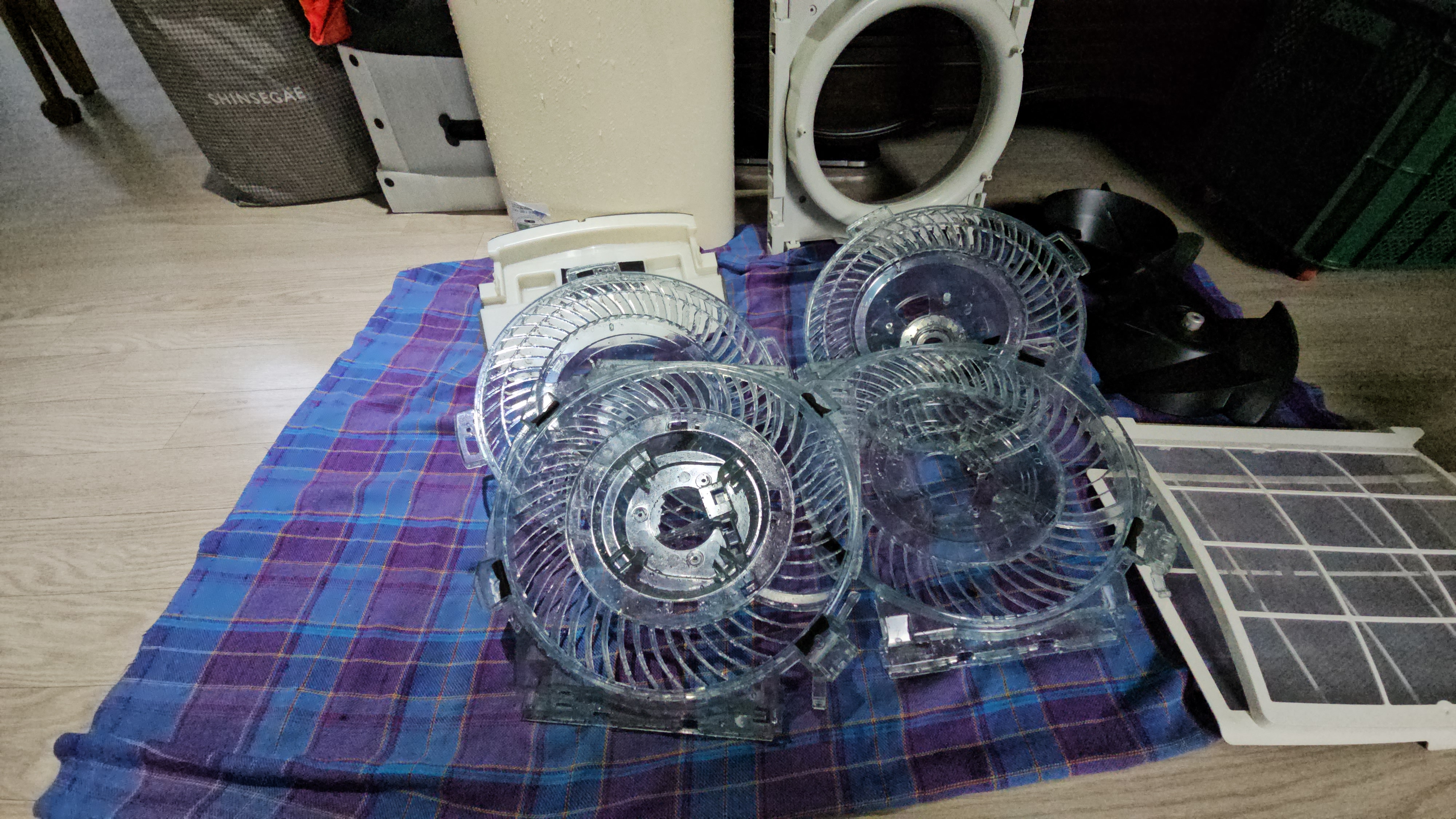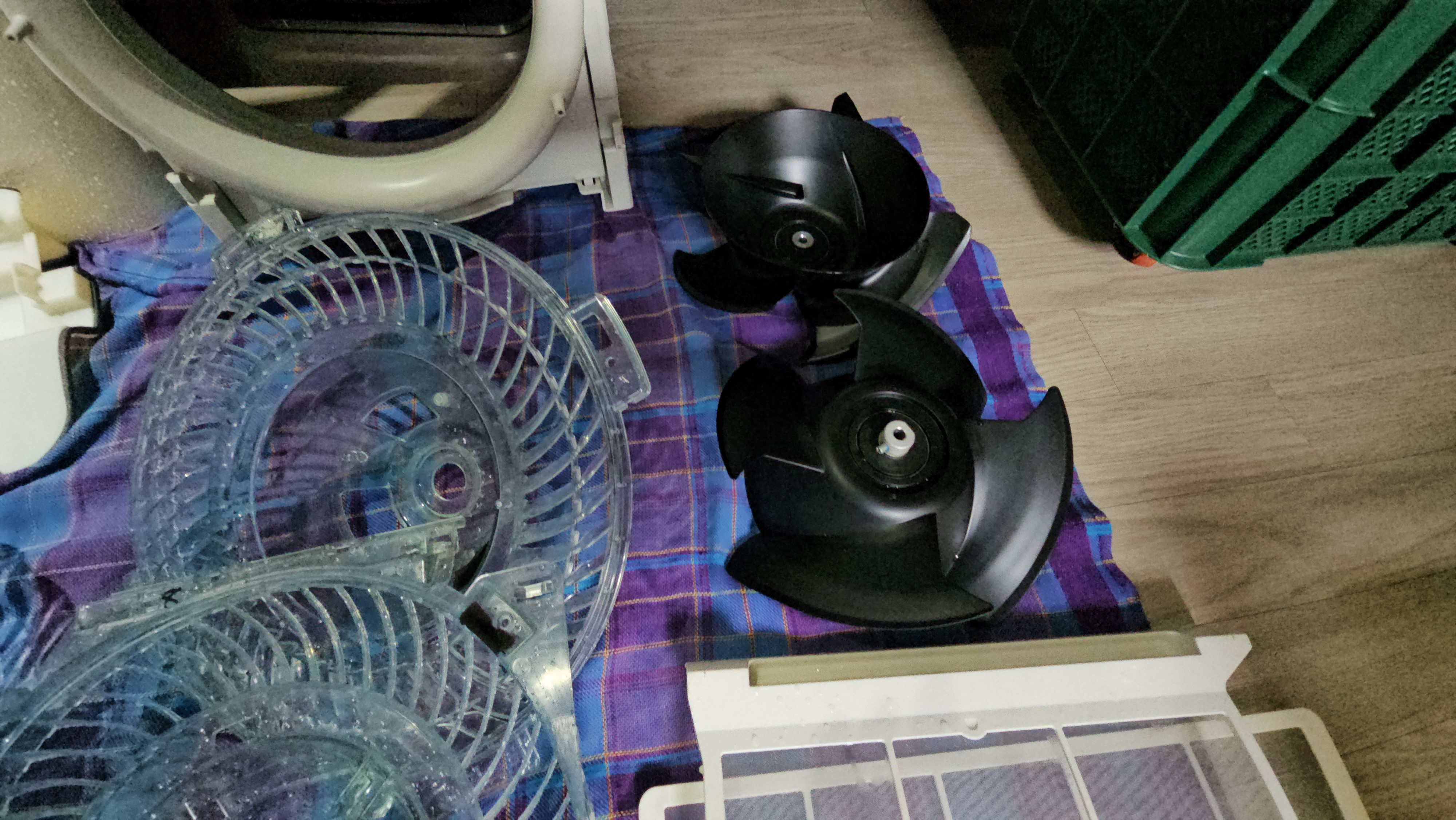 완전 분해 후, 내부 송풍팬부터 열교환기까지